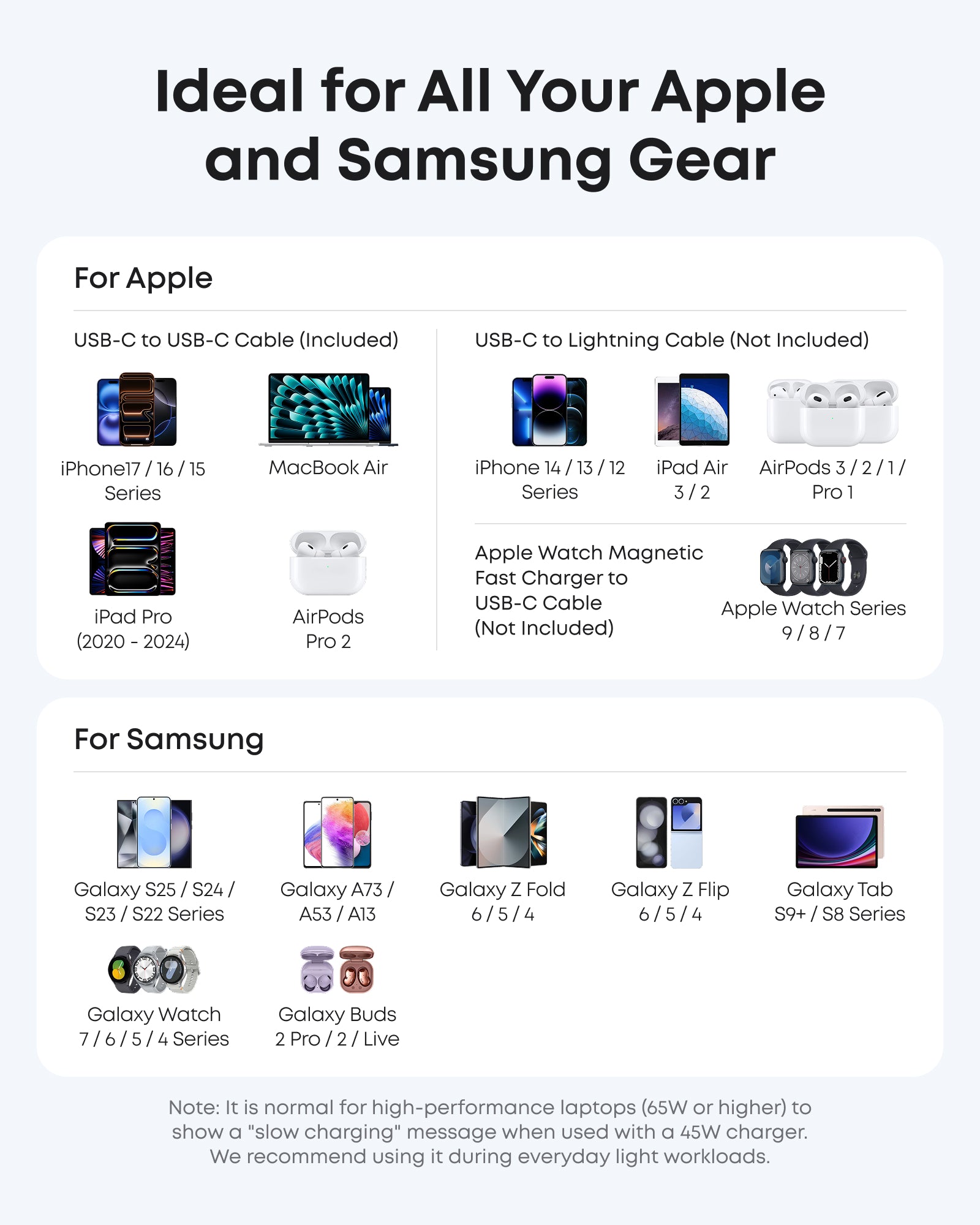 - Universal Charging: Supports a wide range of devices from Samsung to Apple, providing a reliable power source for all your charging needs.