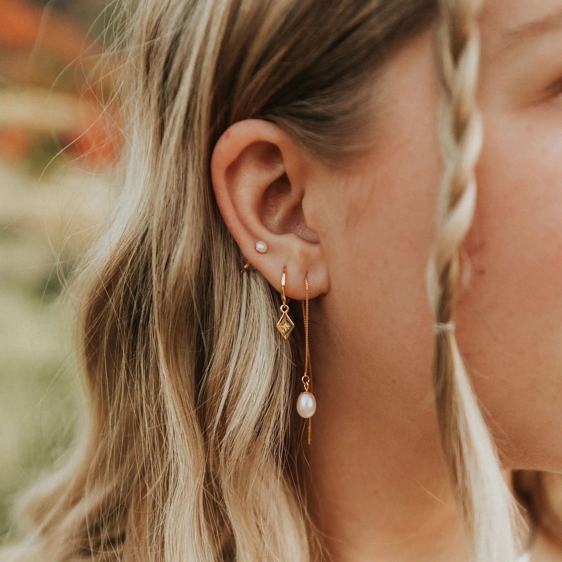 The Nova Hoops (featuring the North Star) are the perfect accessory to complete any outfit. Available in sterling silver and gold vermeil, they are hypoallergenic, tarnish and wear resistant, and perfect for sensitive ears. They have a huggie style closure and are perfect for a first piercing or in an earring stack.